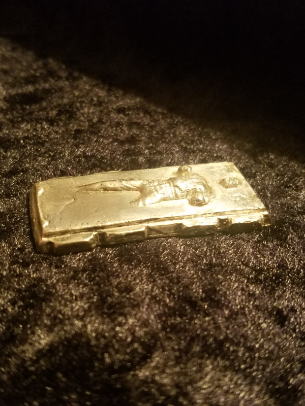 Han Solo$45.00 Out of stock Email when stock available Categories: Silver, Silver .999 Share this: Click to share on Facebook (Opens in new window) Facebook Click to share on X (Opens in new window) X Click to share on Pinterest (Opens in new window) Pinterest Click to share on Nextdoor (Opens in new window) Nextdoor Description Additional information Description This pocket sized Han is frozen for all time in .999 pure silver. Additional information Weight 1.6 oz Related products Jesus Christ Pendant $50.00 Add to cart Steampunk Heart Pendant $50.00 Add to cart St. Joseph Pendant $50.00 Add to cart Mini rocket launcher soldier $45.00 Add to cart