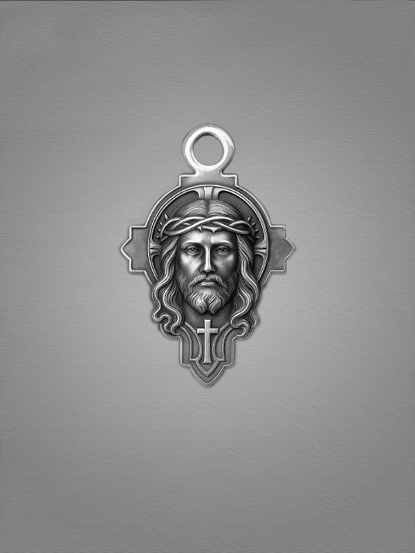 999 silver for exceptional shine and purity. The pendant features a portrait of Christ wearing a crown of thorns, framed by a cross-shaped halo and accented with a polished cross. Designed for spiritual strength and reverence, this piece is ideal for those seeking meaningful Christian jewelry that blends artistry with devotion.
