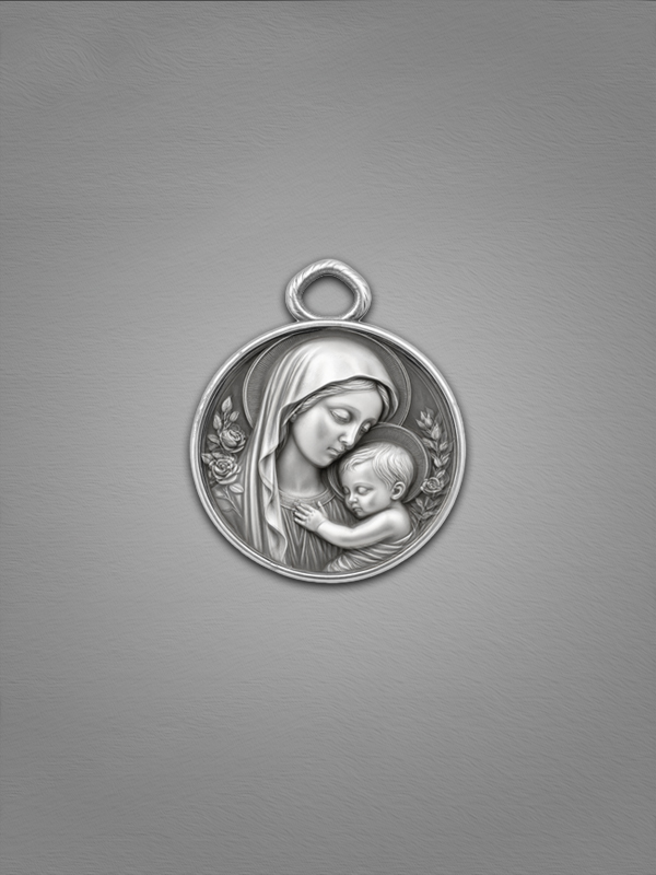 Each pendant is hand-finished, ensuring subtle variations in texture and detail that make every piece truly unique. Ideal for Christian gifts, baptism jewelry, or personal wear, this spiritual keepsake serves as a meaningful symbol of faith, motherhood, and grace.