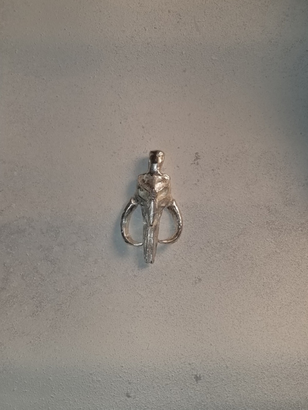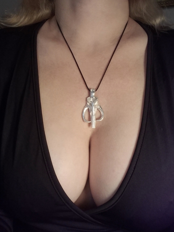 This pendant is handmade of .999 pure silver. 2 and 1/4 inch long.