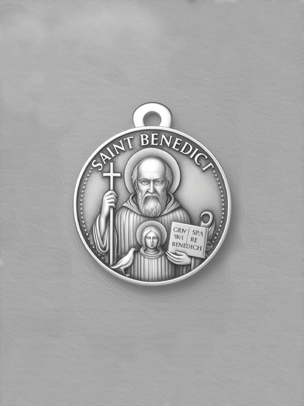 Solid .999 Silver. A timeless symbol of protection and spiritual fortitude, this medallion is cast in pure 999 fine silver and features the revered Saint Benedict cross design. Rich in sacred symbolism, the front showcases the Saint Benedict holding the cross and the Rule of St. Benedict, while the reverse bears the Vade Retro Satana inscription—Latin for “Begone, Satan”—alongside the initials of a powerful exorcism prayer. Every letter and line is crisply engraved, honoring centuries of tradition and devotion.