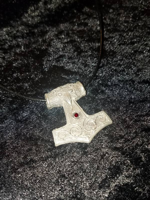 Command your Viking raiders with this extremely ornate Viking hammer necklace made in .999 silver. 1.7 inch long.