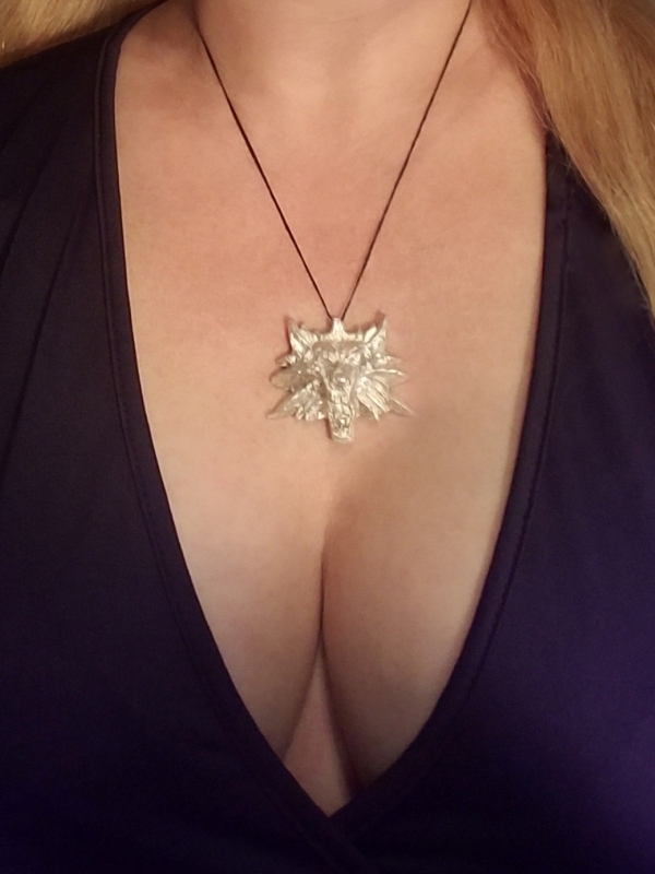 Use this ferocious silver Witcher pendant to battle the monsters of myth and lore. Approximately 1.5 x 1.9 inch.