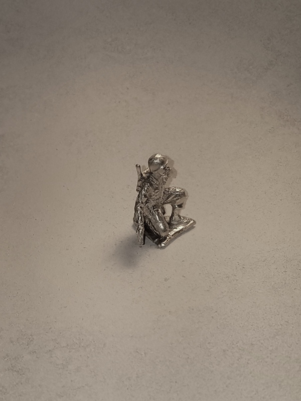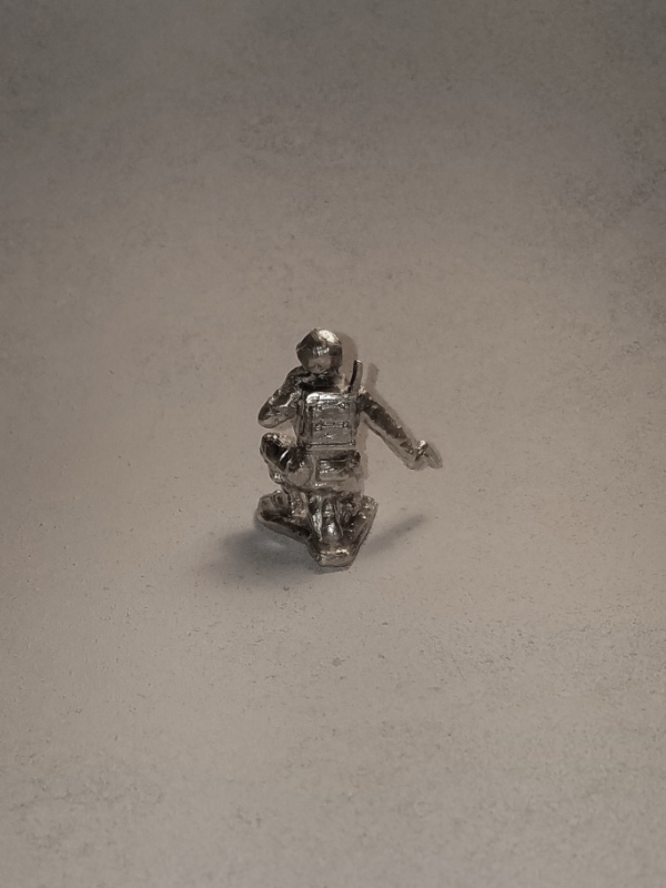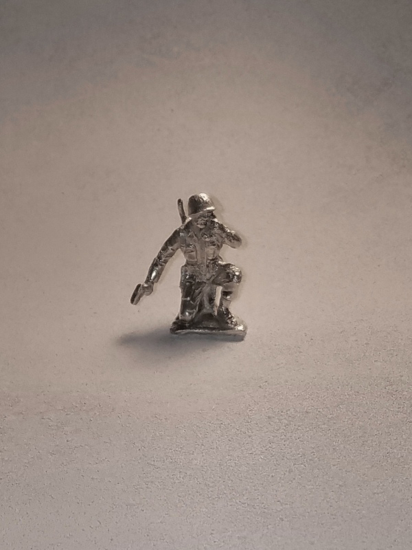This silver soldier is on the radio and ready for battle. Approximately 1.5 inch tall.